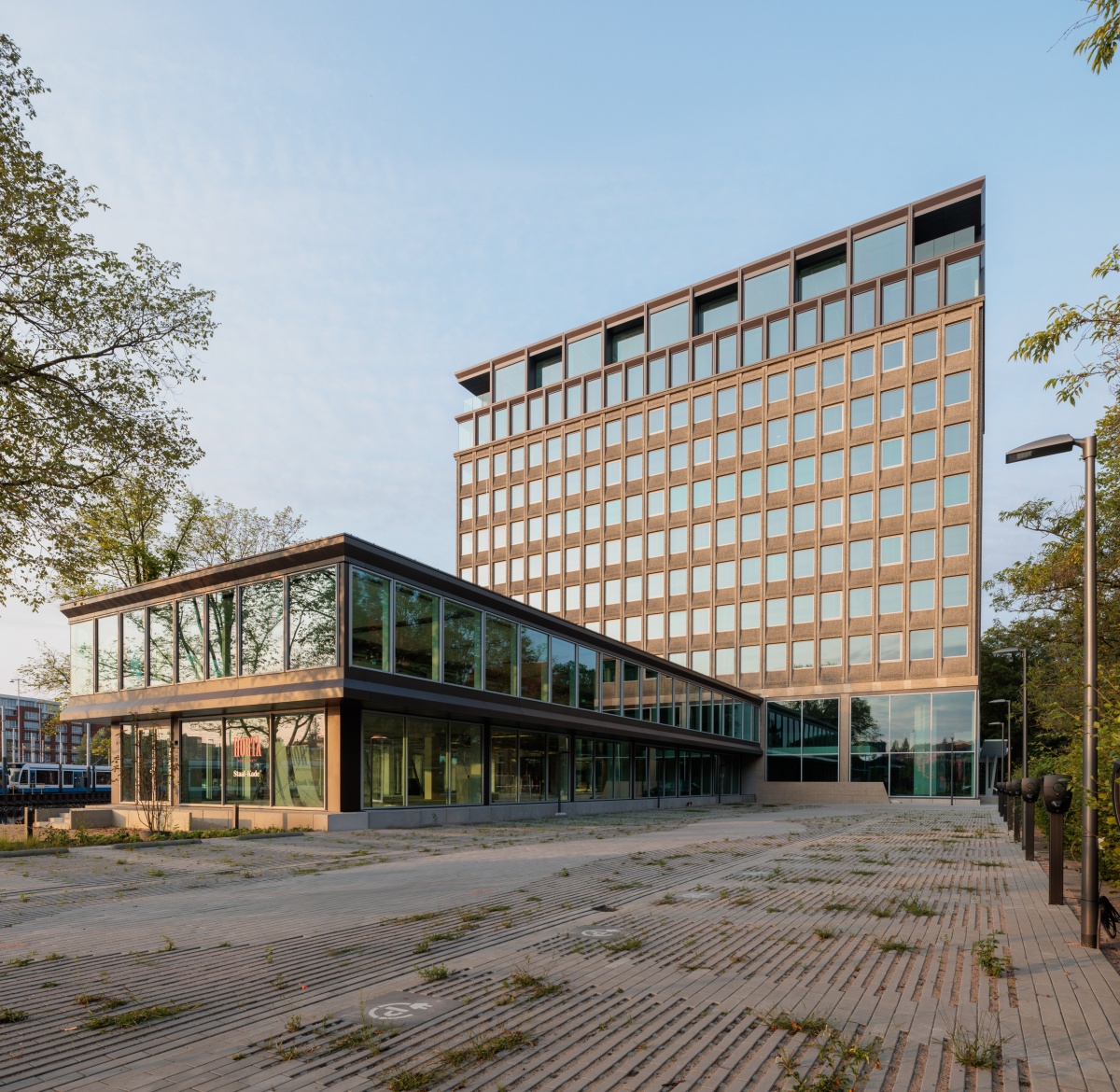 Suchen Sie einen Büroraum in Amsterdam? Rijnsburgstraat 9-11, auch bekannt als Staal-Kade, ist ein Wahrzeichen der Amsterdamer Architekturgeschichte. Das markante Design mit „vertikalem Turm und horizontalem Podium“ wurde sorgfältig erhalten. Die markante Betonfassade des Turms bleibt ein charakteristisches Merkmal, ergänzt durch zwei neue Etagen. Ursprünglich 1962 von Arthur Staal entworfen, wurde dieses ikonische Gebäude mit Bedacht revitalisiert, um seine reiche Geschichte zu ehren und gleichzeitig in die Zukunft zu blicken.