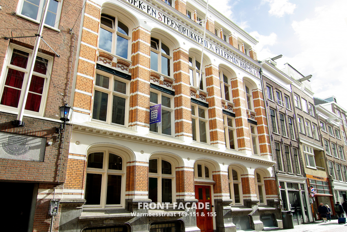 ¿Buscas una oficina en Ámsterdam? Warmoesstraat 149-151 se encuentra en Nieuwmarkt, a solo un paso de la estación central de Ámsterdam y del barrio que la rodea. Ubicada en un edificio clásico holandés, esta oficina está en la antigua sede de la imprenta Ellerman & Harms. Este espacio de trabajo nuevo y espacioso es ideal para emprendedores que buscan una oficina a la que puedan llamar hogar.