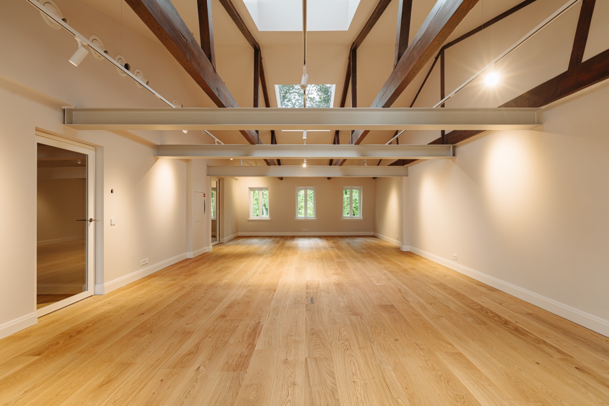Het kantoor is bereikbaar via een representatieve entree met lift en trappenhuis. De afwerking is turn-key met een houten vloer, designverlichting, chique sanitaire voorzieningen en een op maat gemaakte keuken. De buitenruimte omvat een fraai aangelegd groen privéparkeerterrein van circa 358 m² met laadpalen en sierlijke beplanting. Het monument is verduurzaamd volgens de BREEAM-NL standaard (verwacht niveau Excellent) en voorzien van zonnepanelen, warmtepompen, WTW-units en waterbesparende installaties. Materialen zijn zorgvuldig geselecteerd op circulariteit en lage CO₂-uitstoot.