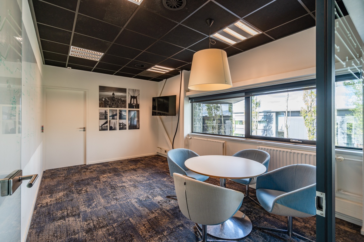 Binnen beschikt het pand over een breed scala aan faciliteiten. Er zijn diverse vergaderruimtes beschikbaar, geschikt voor zowel kleinschalig overleg als grotere bijeenkomsten. Daarnaast is er een volwaardige en luxe gym aanwezig met een uitgebreid aanbod aan fitnessapparatuur. De lunchvoorziening vormt een centrale ontmoetingsplek en biedt de mogelijkheid om dagelijks verse lunch te verkrijgen. In deze ruimte bevindt zich tevens een bar, die wordt gebruikt voor informele ontmoetingen, borrels en events. Verder beschikt het gebouw over een ruim dakterras en een groot parkeerterrein rondom het pand, wat bijdraagt aan het comfort en gebruiksgemak.