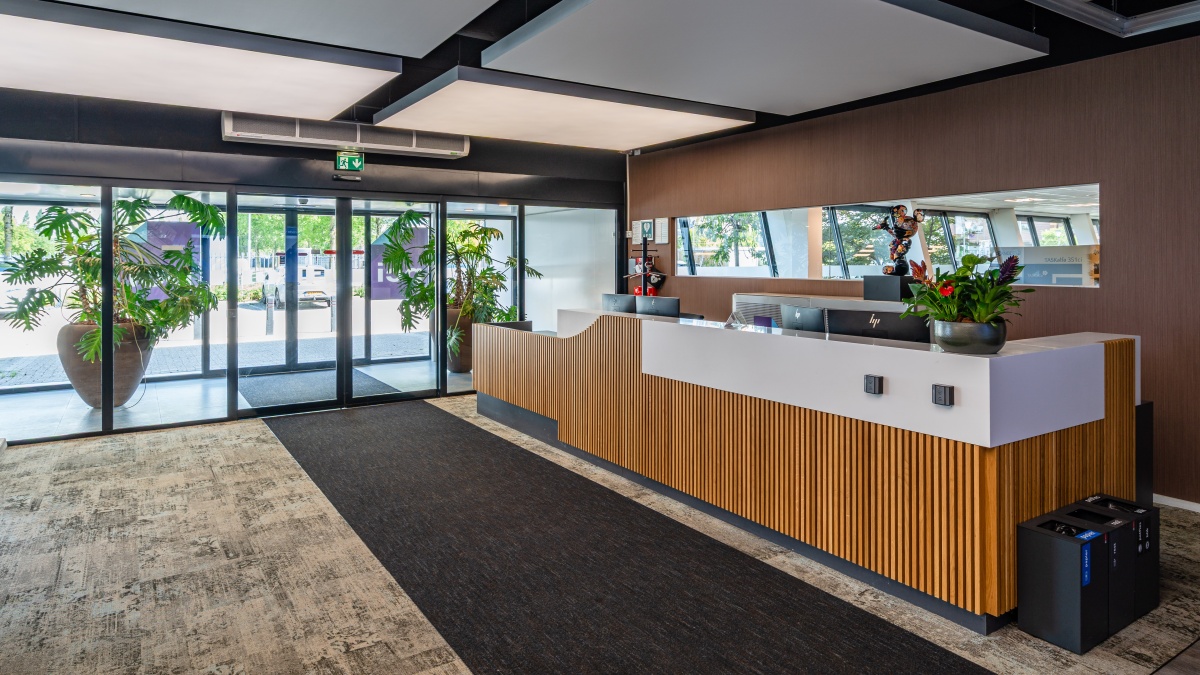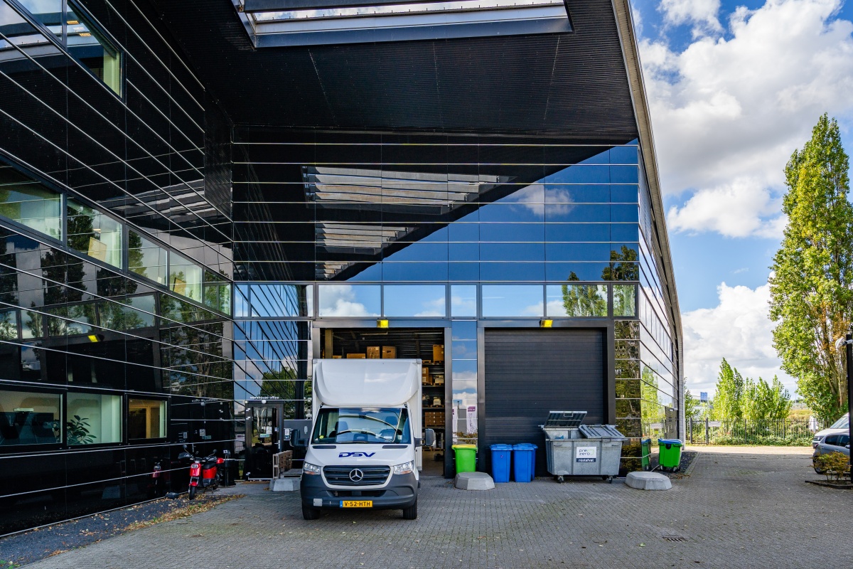Het kantoorgebouw aan de New Yorkstraat 6 in Lijnden valt direct op door zijn bijzondere architectuur. De gevel bestaat uit een combinatie van veel glas en een hoogwaardige metalen afwerking, wat het gebouw een eigentijdse en onderscheidende uitstraling geeft. Bij binnenkomst word je ontvangen in een ruime en uitnodigende entree met een bemande receptie, waar bezoekers comfortabel kunnen plaatsnemen. Het interieur is strak en ruim opgezet, met veel glaspartijen die zorgen voor transparantie en een prettige lichtinval door het hele gebouw.