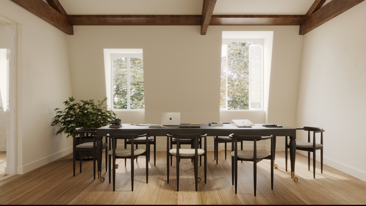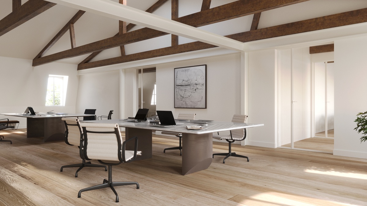 The historic townhouse Cornelis, located on Oosteinde, has been completely transformed into a high-end, sustainable office building. The Neo-Renaissance architectural style has been carefully preserved, while the property is equipped with modern, energy-efficient installations and an advanced smart office system. Situated opposite the Dutch Central Bank, next to Frederiksplein and near Utrechtsestraat and the Amstel River, Cornelis offers a prestigious and characterful working environment. The monumental building comprises four luxurious, self-contained offices, with Oosteinde 9D-approximately 254 m² LFA-occupying the entire loft floor. The space is bright, open and spacious, accommodating around 52 workstations and three private parking spaces.
